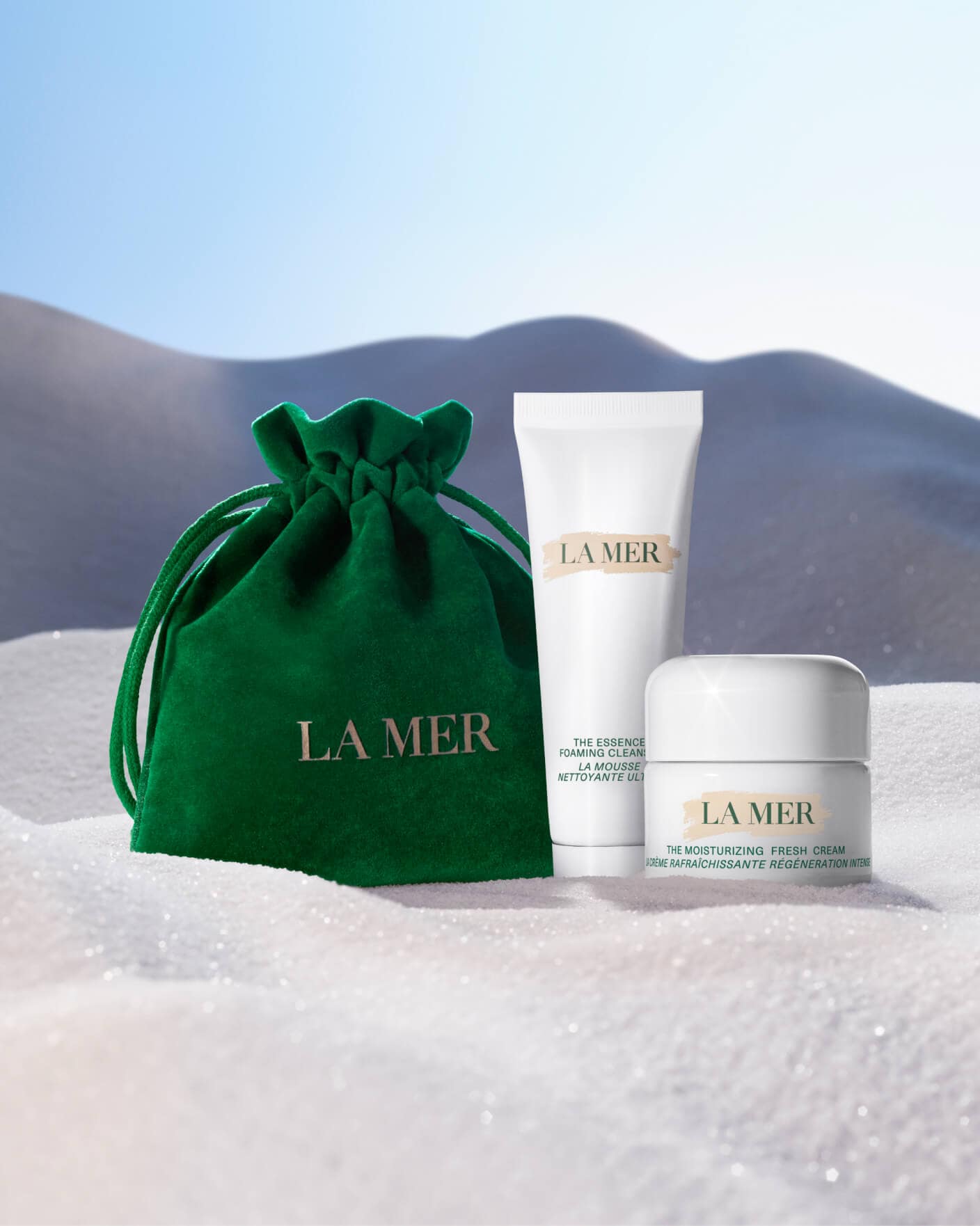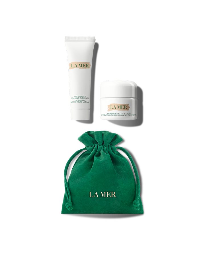 The Moisturizing Fresh Cream 15ml The Essence Foaming Cleanser 30ml Signature Velveteen Pouch