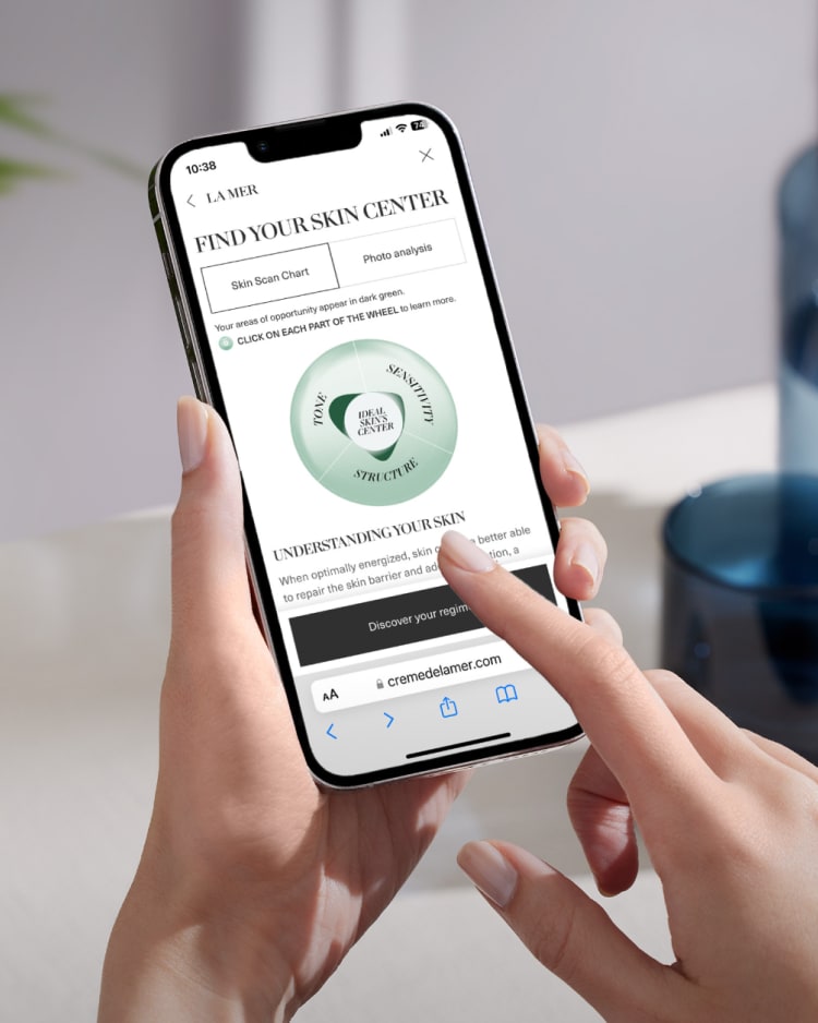 La Mer’s Skin Centering Analysis™ is our NEW AI skin diagnostic technology grounded in our skin philosophy. This skin analysis captures your image to measure your skin across 3 parameters: tone, sensitivity and structure. It then recommends a skincare regimen to help recenter your skin to a more optimal state.